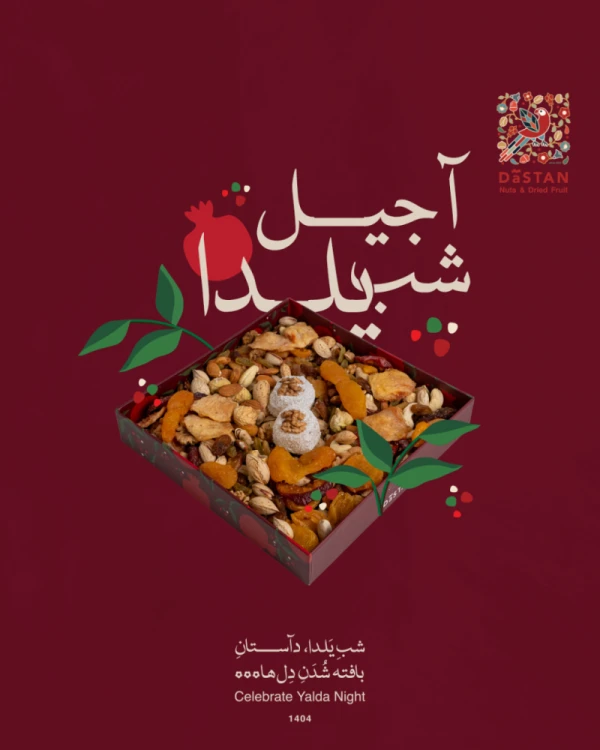آجیل شب یلدا کادویی دآستان در بسته بندی یلدایی جذاب دآستان